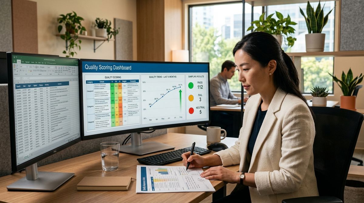 Rubrics, sampling, and drift monitoring keep outputs consistent over time.